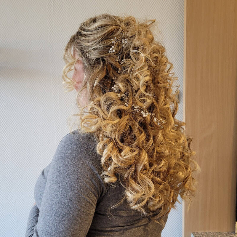 - Een leuke opgestoken look of een mooie look met krullen, er is veel mogelijk, maar altijd op jouw wensen aangepast
